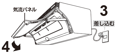 - 「ピッ」と音がし、気流パネルが開き始めます。