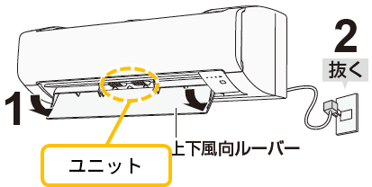 を3秒間、長押しする。2上下風向ルーバーが停止してから、電源プラグを抜く