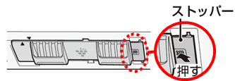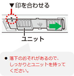 3ストッパーを押しながらユニットを右にずらし、印(▲と▼)を合わせてはずす