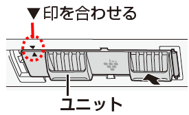 1ユニットを印(▲と▼)に合わせて矢印部をしっかり押してはめ込み、左にずらす
