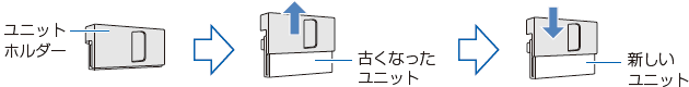ユニットホルダーから古くなったユニットを取り出し、新しいユニットを取り付けます。