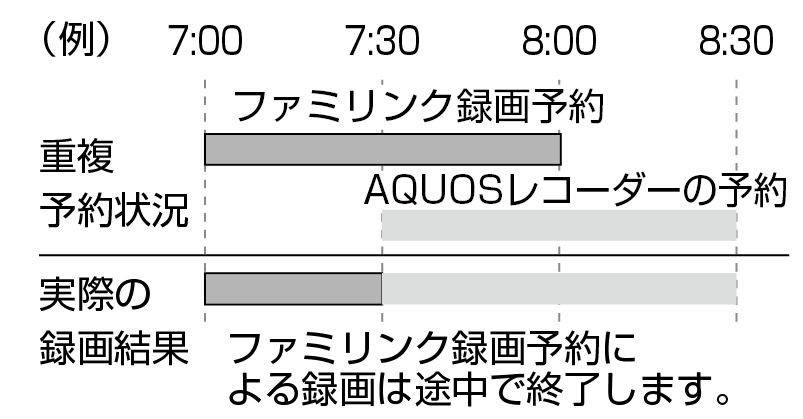- AQUOSレコーダーで日時の重なる番組が予約されている場合は、レコーダー側の予約が優先されます。