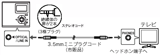 ヘッドホン端子に、3.5mmミニプラグコードで接続してください。