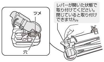レバーを開いた状態で取り付けてください。レバーが閉じているとブラシカバーが取り付けできません。