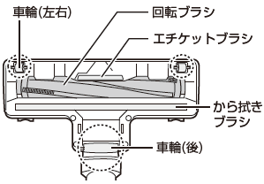 回転ブラシをはずし、水または薄めた中性洗剤で洗う。