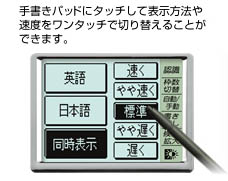 字幕リスニング機能は、Brothers & Co.(株)の「ボイス&スクリプト・シンクロナイザー」技術を使用し、英語音声を聞き流すだけでなく、日本語訳の確認や、英文と日本語訳を同時表示することができます。表示方法や速度を切り替えて、熟練度や目的に合わせたリスニング学習ができます。