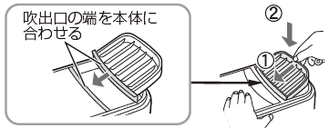 加湿器 お手入れ 吹出口 お手入れの目安:1カ月に1回程度 お手入れをするときは、必ず運転を停止し、電源プラグを抜いてください。 本体やフィルターのお手入れに、使ってはいけないものは、こちら ※吹出口の形状は機種により異なりますが、お手入れの手順は同じです。 はずして水洗いする(運転中は必ず吹出口を取り付けてください) はずしかた 取り付けかた
