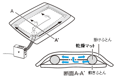 - 大きいふとんや重いふとんの場合は、乾燥マットがふくらみにくくなります。
