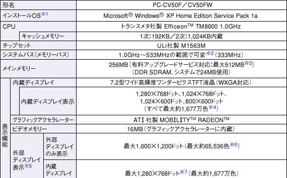PC-CV50F 仕様表