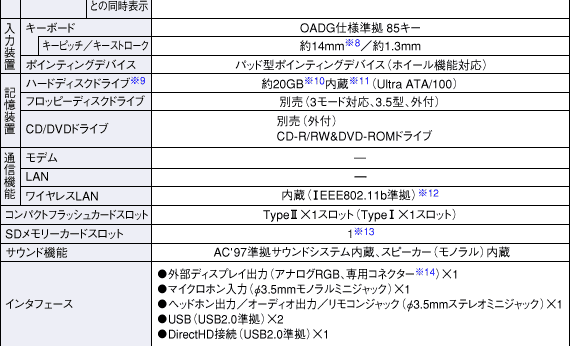 サポート・お問い合わせ パソコン仕様表