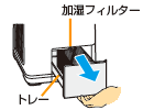 ・ 加湿フィルターのニオイが取れにくい場合は、水に重曹(1リットルあたり60g:大さじ4杯)を溶かした容器でつけ置き洗いし、十分にすすいでから本体に取り付けてください。(つけ置き時間 約30分)