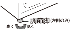本体が傾いたり、がたつくときは調節脚を回して傾き・がたつきが無くなるよう調節してください。