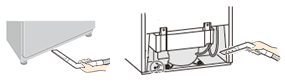 冷蔵庫の前面下と周囲の脚まわり、背面、床、壁などのほこりを掃除機で吸い取ります。