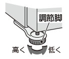 本体が傾いたり、がたつくときは調節脚を回して傾き・がたつきが無くなるよう調節してください。