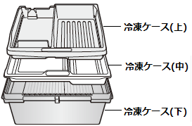 - ドアを少し持ち上げ、さらに引き出して、床に置き、冷凍ケース(下)を取り出します。