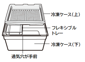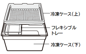 - 冷凍ケース(上)、フレキシブルトレーを取り出します。