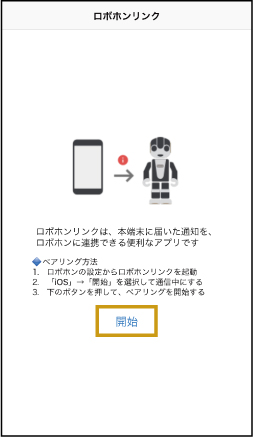 お使いのスマートフォン/タブレットで「ロボホンリンク」を起動⇒スマートフォン/タブレット側