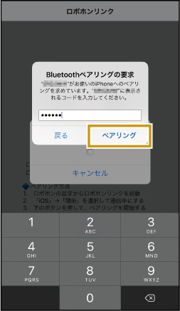 スマートフォン/タブレット側ロボホンに表示されたペア設定コードを入力⇒ペアリング