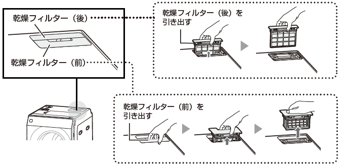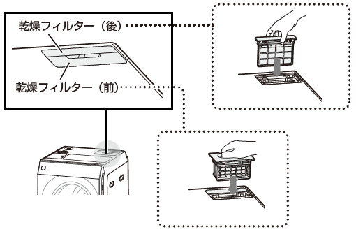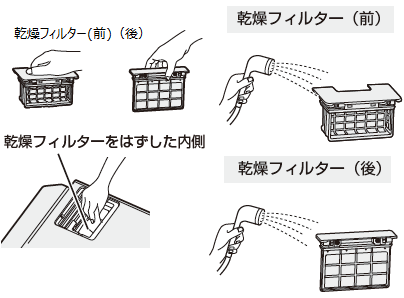 ・洗った後は、乾いた布で乾燥フィルターの水分を拭き取ってください。