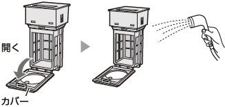 2.乾燥フィルターのカバーを開いて、メッシュ部を外側からシャワーで流し、乾いた布で水分を拭き取る