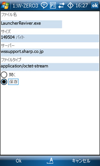 ダウンロードの画面で「ダウンロード後にファイルを開く」をタップしてチェックマークをはずし、「名前を付けて保存・・・」をタップします。