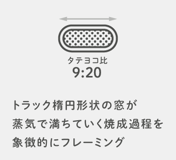 また、僕自身の原体験から、窓をのぞき込んで焼き上げる過程をワクワクしながら楽しんでほしいという思いがありました。なので、ついついのぞき込みたくなる隠し味として窓フレームのタテヨコ比を9:20に設計しています。これはスマホ画面で主流になっている比率なんです。「人々がつい見てしまう、よく目にするものって何だろう」と考えていく中で、みなさんが一番見慣れている比率として、今回の窓比率に落とし込みました。